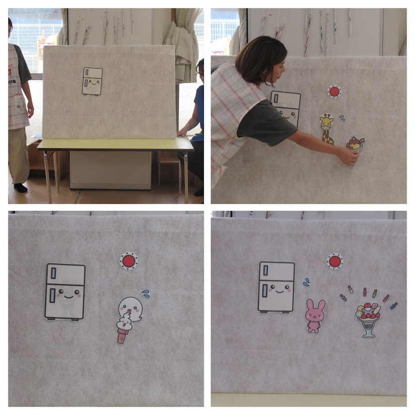 先生たちからの出し物では、『ひえひえれいぞうこ』というお話のパネルシアターを行ないました!