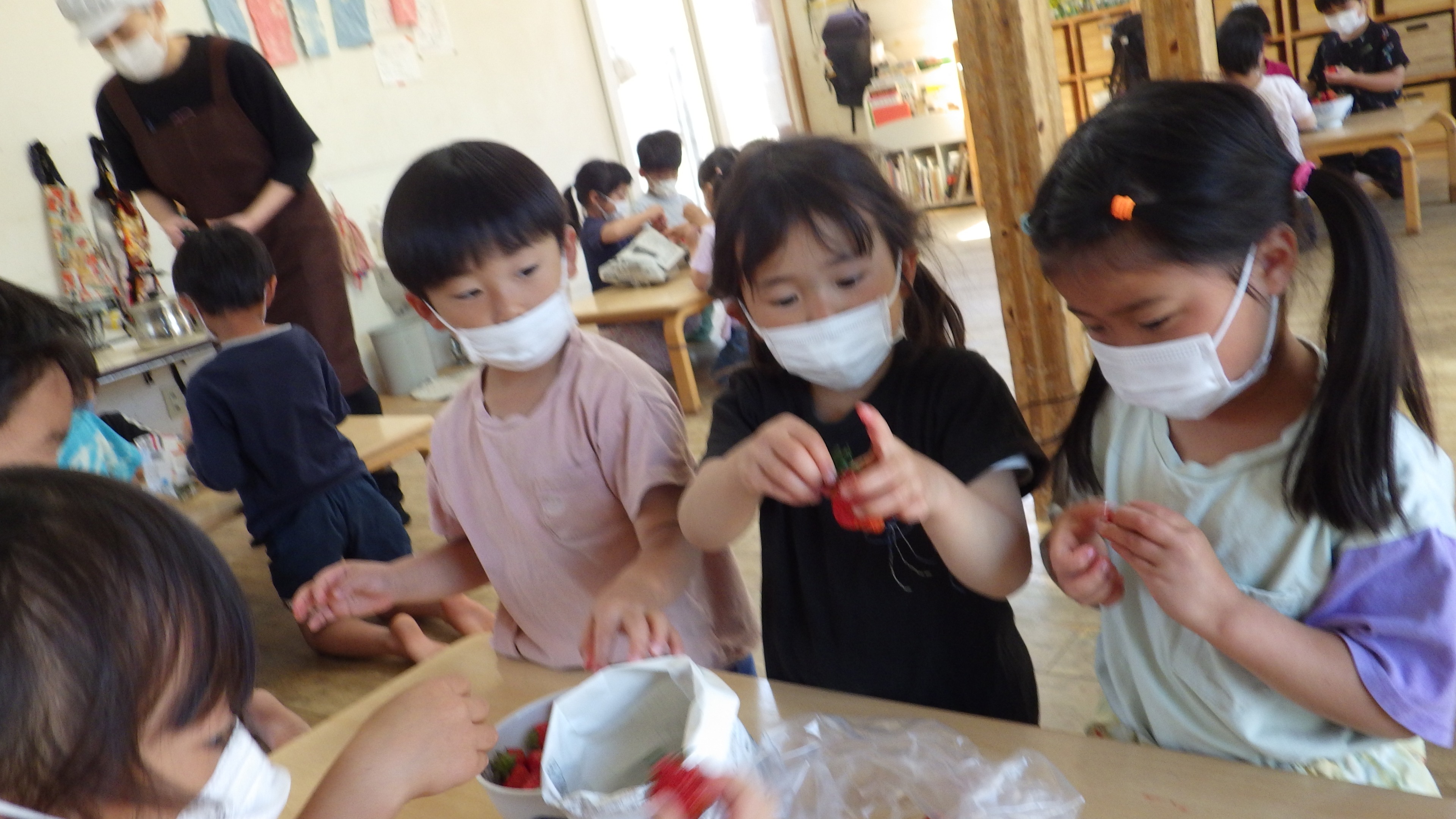 味はもちろんの事子どもたちが食事を目にした時に、視覚からも刺激を受け「おいしそう!」と感じたり手が伸びるような鮮やかで感動的な食卓を目指しています。子どもたちから「わあ~!」と歓声が上がる日も多いです。