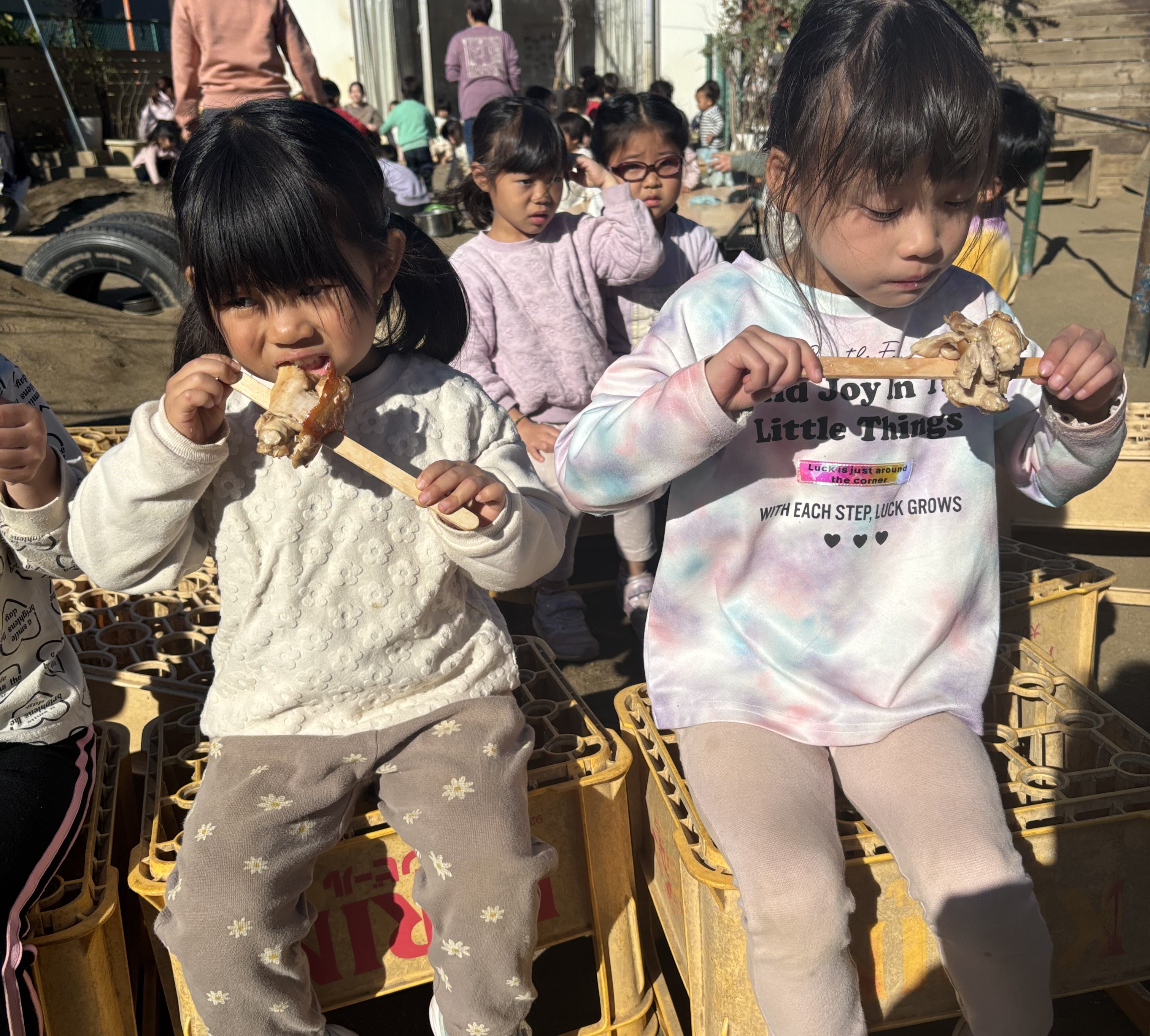 幼児期にはお皿を支える腕・指先の力が育ったり、形あるものは壊れることを学ぶ機会になっています。結果的にものを大切にする力が育ちます。