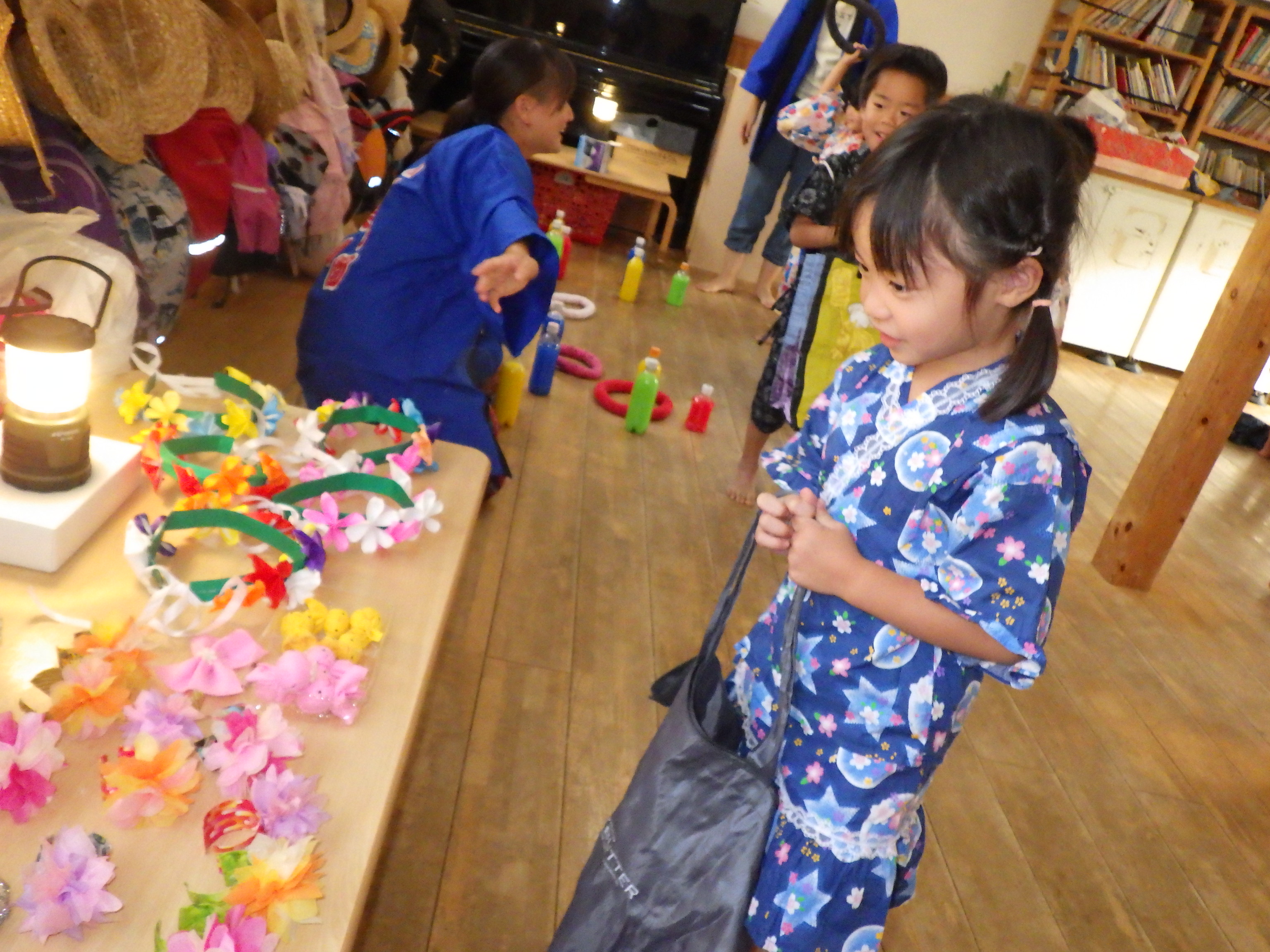 おやつの後に甚平・浴衣に着替えて、おみこしや縁日、みんなでのご飯を楽しみました。
